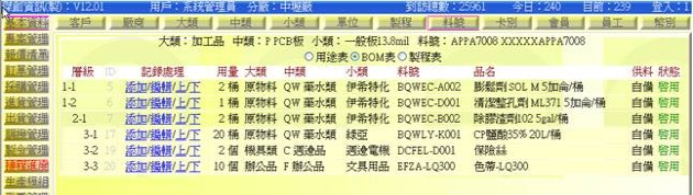 (下圖示範某製成品其在基本料表中所設定的原始BOM結構表)
