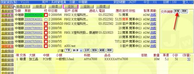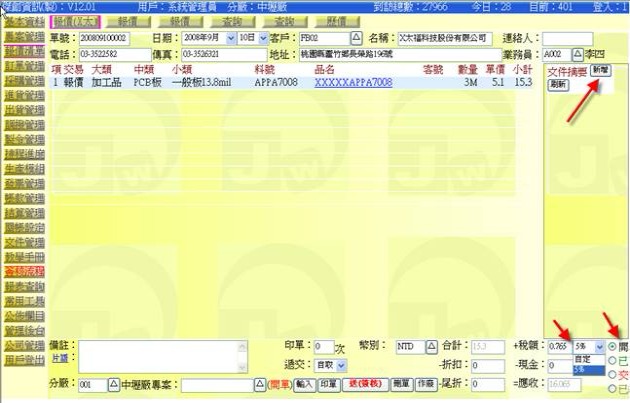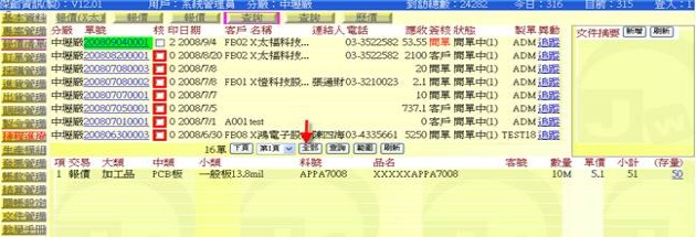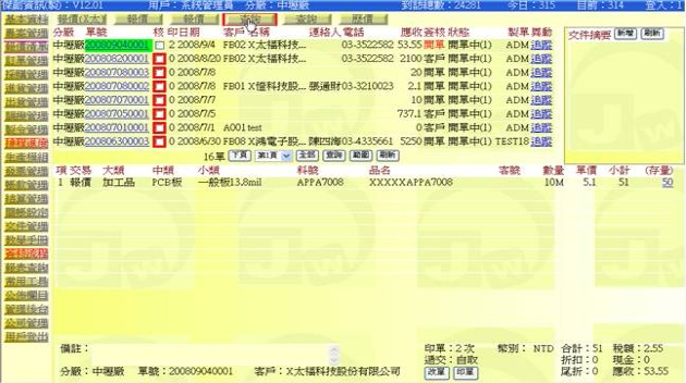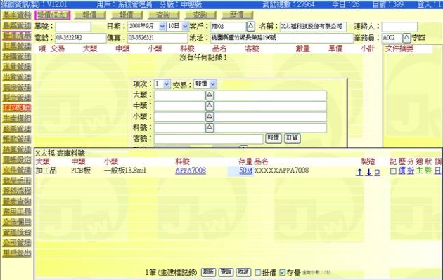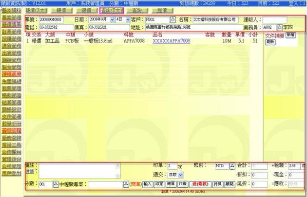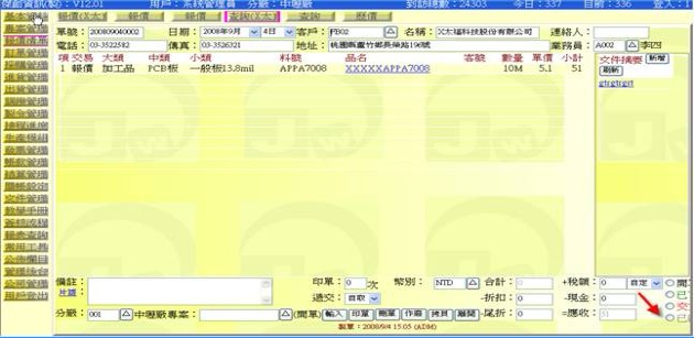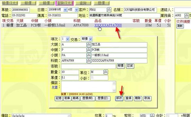 (下圖示範被叫出的單據,注意上方次功能的「查詢(X大)字樣」,它代表正在修改的單子屬於X大這個客戶)