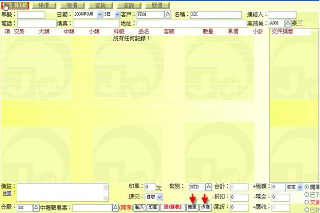 - 按上述按鈕後,可完成開單作業,畫面將變成全新空白的狀態,等待下一單據的輸入。