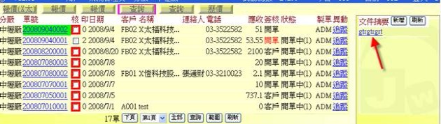 (下圖展示可按下「文件摘要」欄位,重新叫出該份跟單文件)