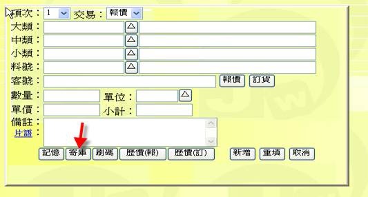 - 按下「寄庫」按鈕(下圖紅色箭頭處),可從寄庫表中挑選出相關的品項欄位。