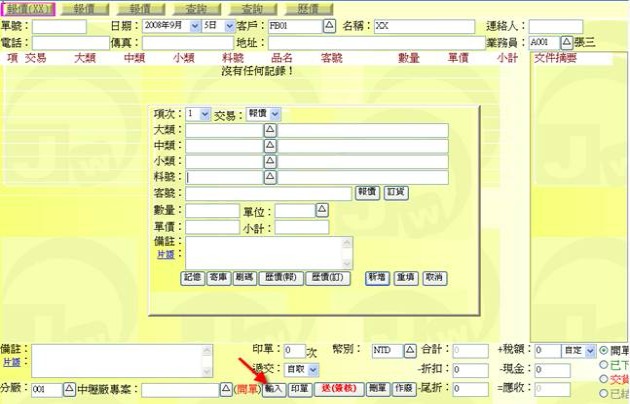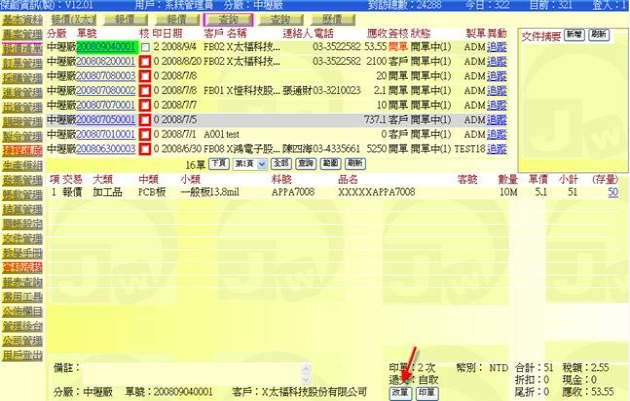 - 按下方「印單」按鈕(下圖紅色箭頭處),可套表列印此張報價單。