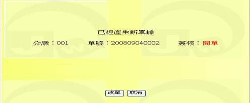 - 拷貝完成後會出現新單據號碼,可按下「改單」按鈕進入新單據中。