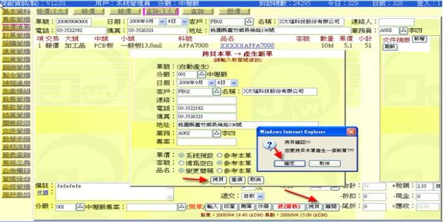 - 接著按下窗格中的「拷貝」按鈕,就可拷貝產生新單據。