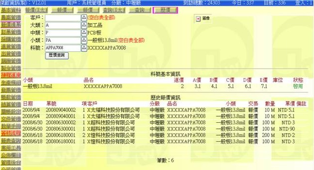 進入方式:主功能「報價管理」→次功能「歷價」
