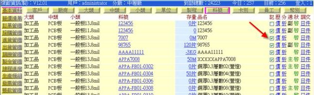 (下圖示範「寄庫」清單,點選表中的某「料號」即可拷貝出相關的寄庫品項)