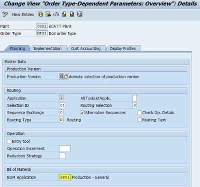 - it’s not possible to create an order without routing (if no routing is existing, the system checks OPJG (details - wiki page operations, see link below)