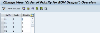 - OPL8 (Order type-dependent Parameter) -> OS30 (Application-Specific Criteria for Alternative Determination) -> OPJI (Order of Priority for BOM Usages - if it is not maintained, then the first BOM is selected automatically)