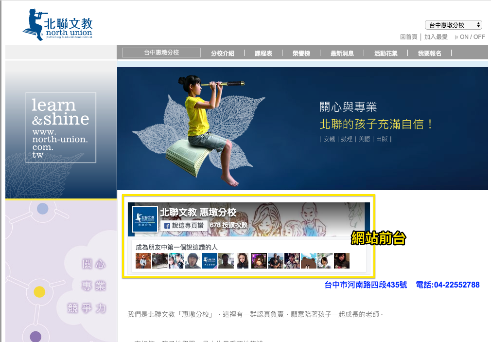 北聯文教官網:各分校介紹畫面,只保留分校名片式功能,統一增加各校紛絲專頁連結。