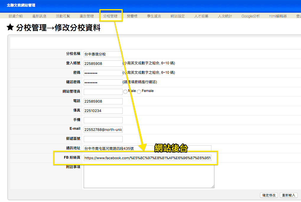 北聯官網修改:分校簡介頁面:優先製作:與王主任溝通過後: