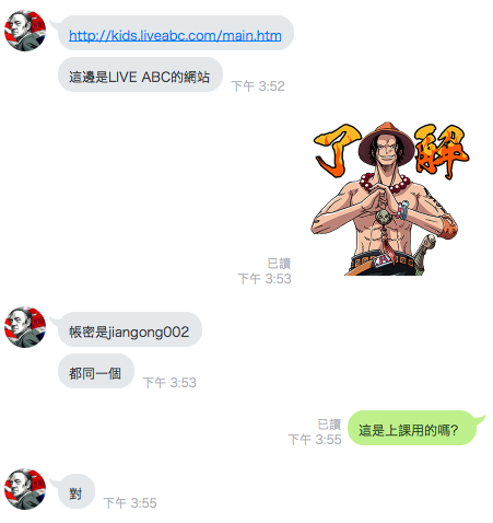Mark 提供 LiveABC 網址:帳密:jiangong002:帳密都一樣