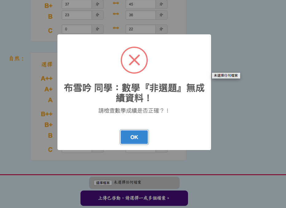 偉明反映:模擬考成績上傳,出現異常訊息: