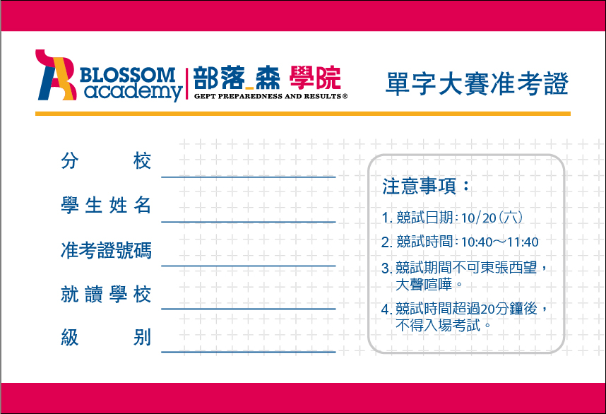 美工 Handball:2018-18th資優競試、第七屆單字大賽准考證