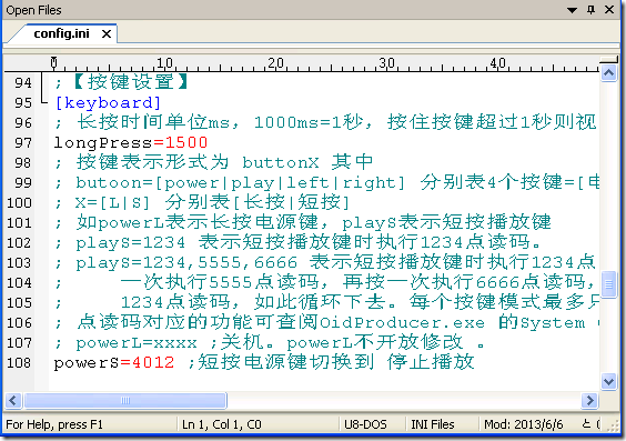 - 提供開機設定檔案 config.ini, 客戶可設定開機音量, 各按鍵的功能….