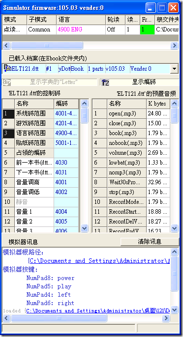 - 與點讀筆分位相同代碼的模擬器, 也就是在電腦上使用模擬器測試跟使用點讀筆實際點讀的結果非常相似. 在編輯點讀筆內容時不需要將內容輸出到筆內. 直接用模擬器測試即可確定9成9的功能, 節省非常多的時間.