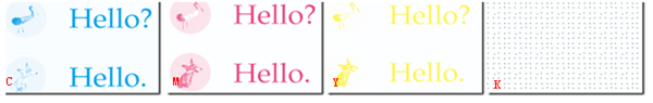 四. 印制K版所用油墨 → 用C+M+Y混合后的油墨印制,也可采用不含碳的黑油墨