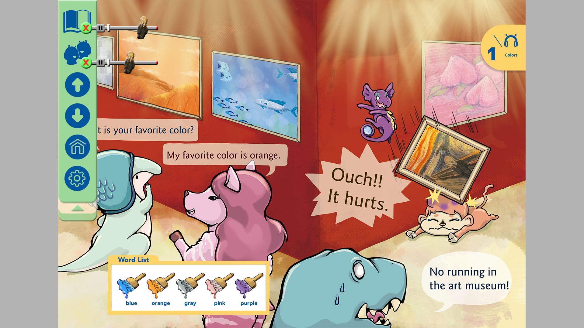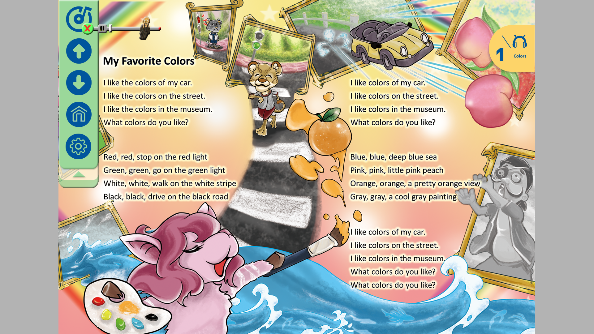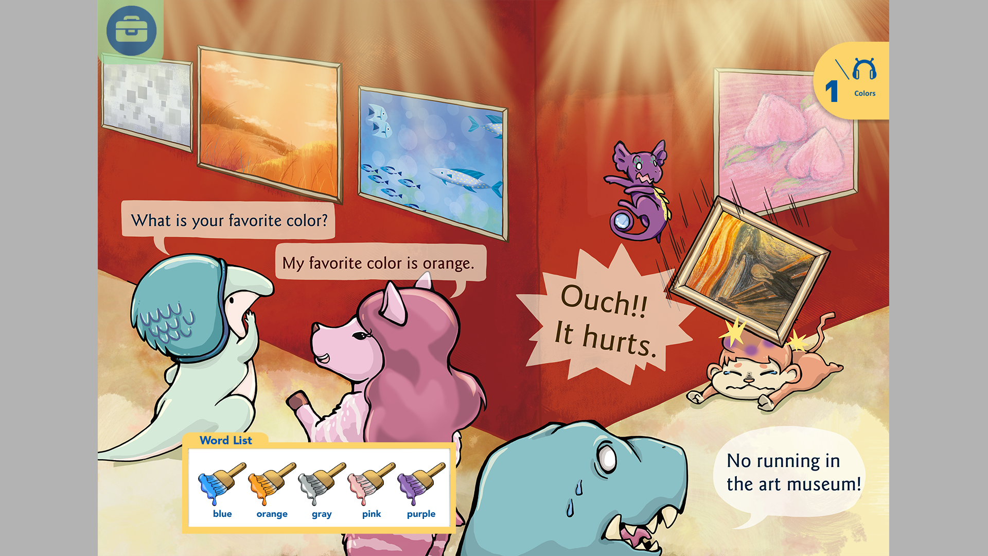 點擊單字時,會有刷子畫出該顏色的簡短動畫,並唸出發音兩次。