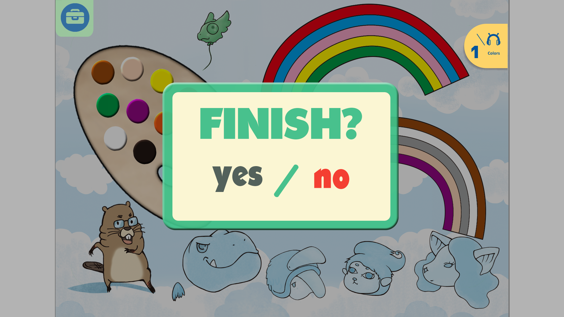 特效設計內容 當整個彩虹完成時,會有視窗跳出確定是否已完成?確定完成的話,會有特效使彩虹色條由上到下,發出閃光跟音效。