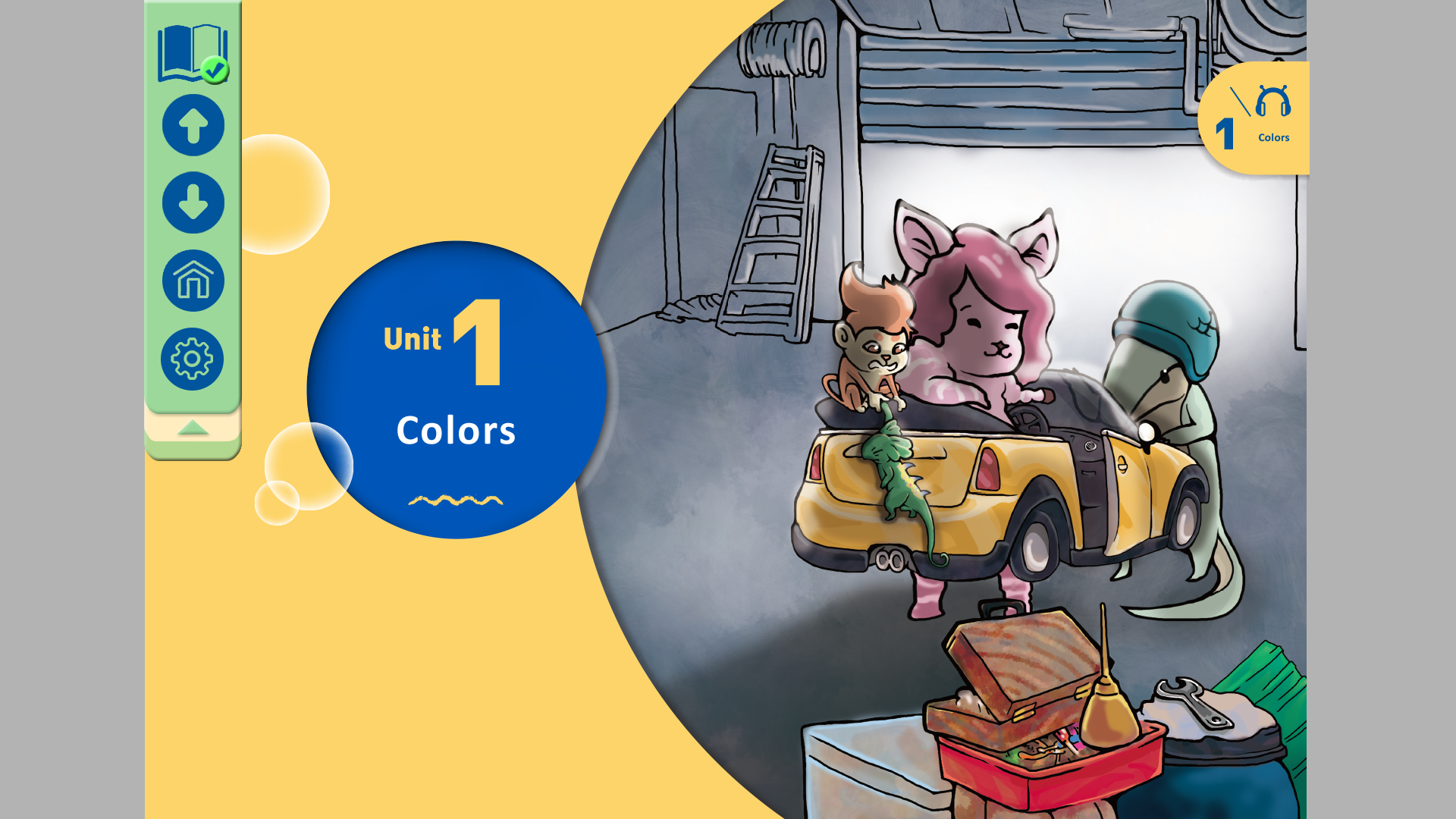 教學設計內容 彈出選單放置書本icon,點擊之後會撥放課文。 點擊下一頁的icon可以往下一個頁面翻。