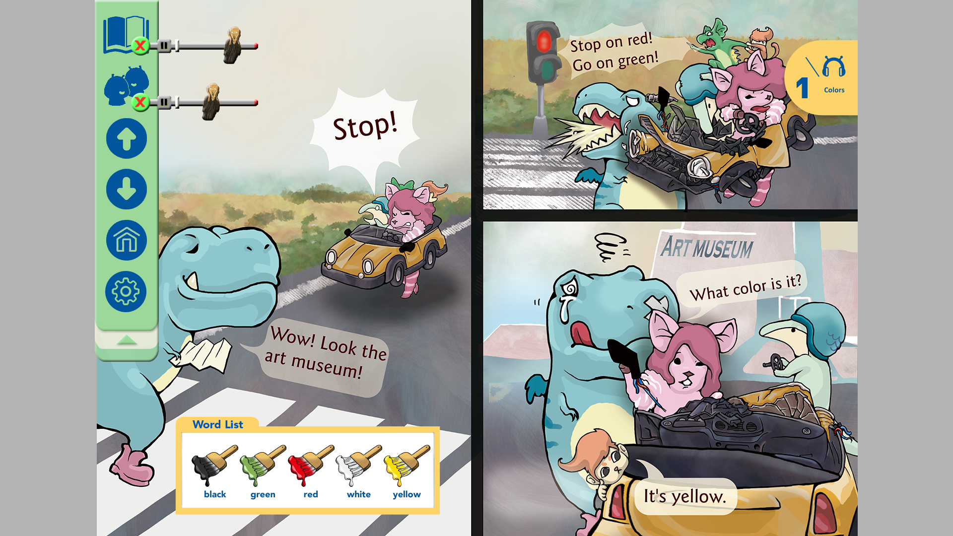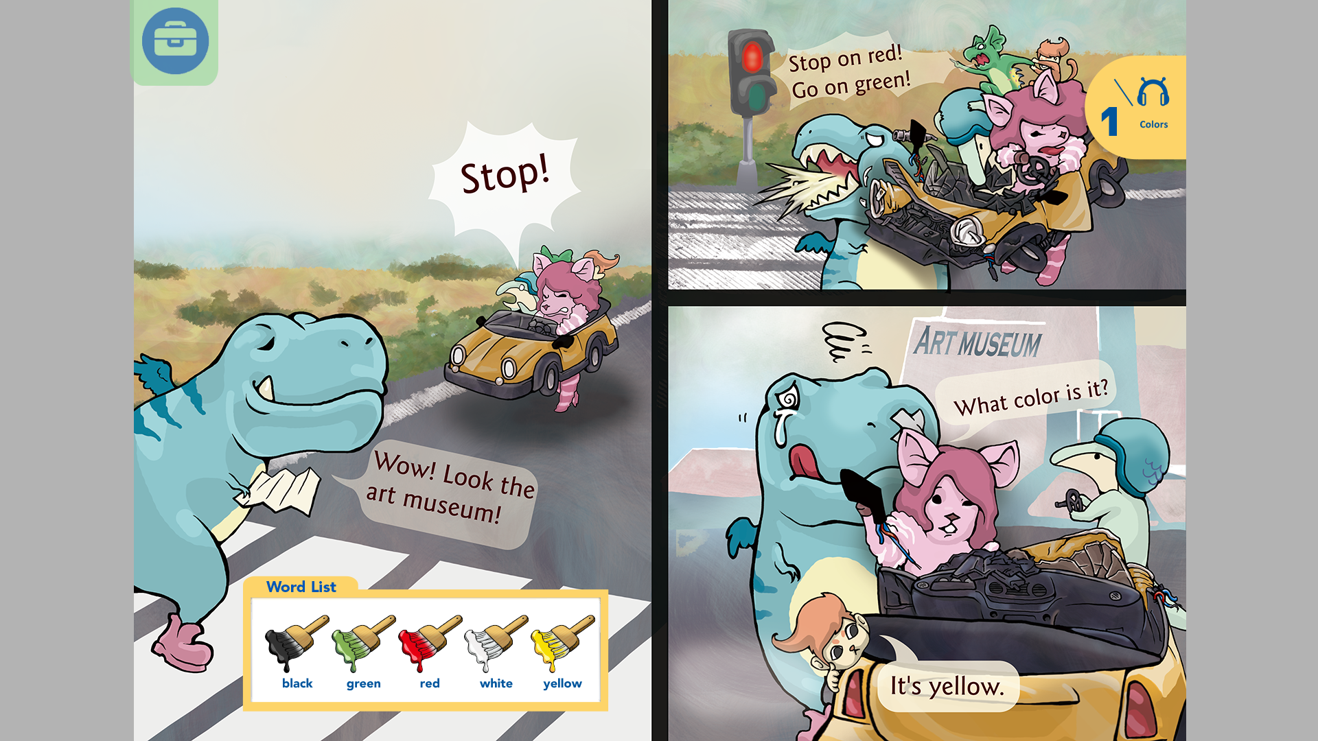 點右邊上方的黃色車子,會有引擎發動的音效。