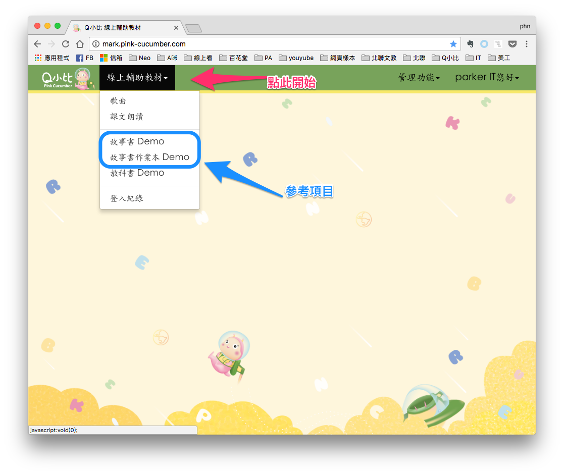 - 第一版試做:Q小比教材 Starter1:Page 1 ~ 11