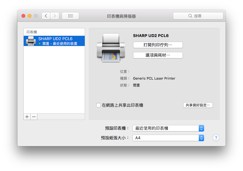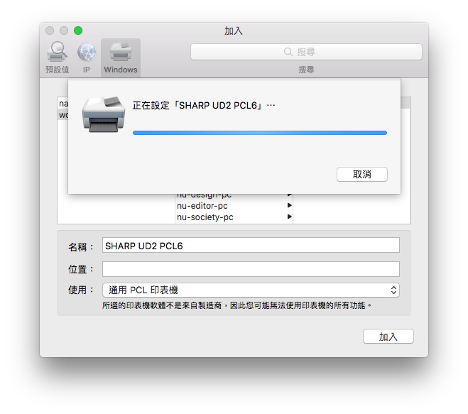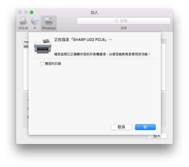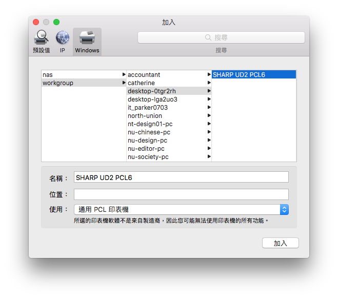 因此,macOS 的電腦必須使用 Windows 分享的印表機。